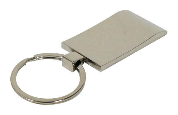 All metal keyring with a shiny silver finish large border and matt silver finish centre section. Slightly sloping design with 5mm depth at its widest part. Welded 30mm split ring attachment.